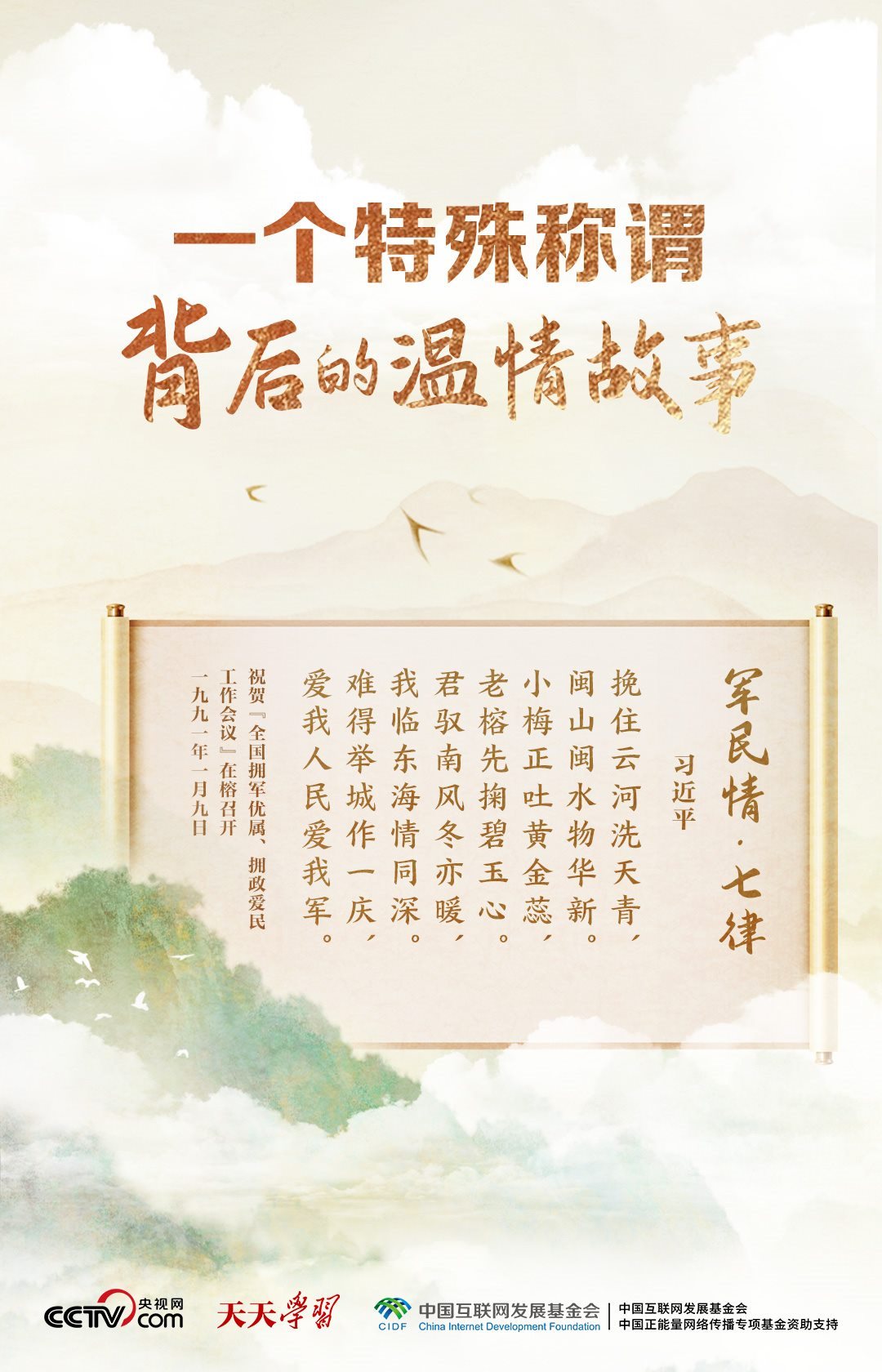 當年在福州工作時,習近平曾賦詩《軍民情·七律》,表達了他對軍隊的深情:“君馭南風冬亦暖,我臨東海情同深。難得舉城作一慶,愛我人民愛我軍?!?/p>