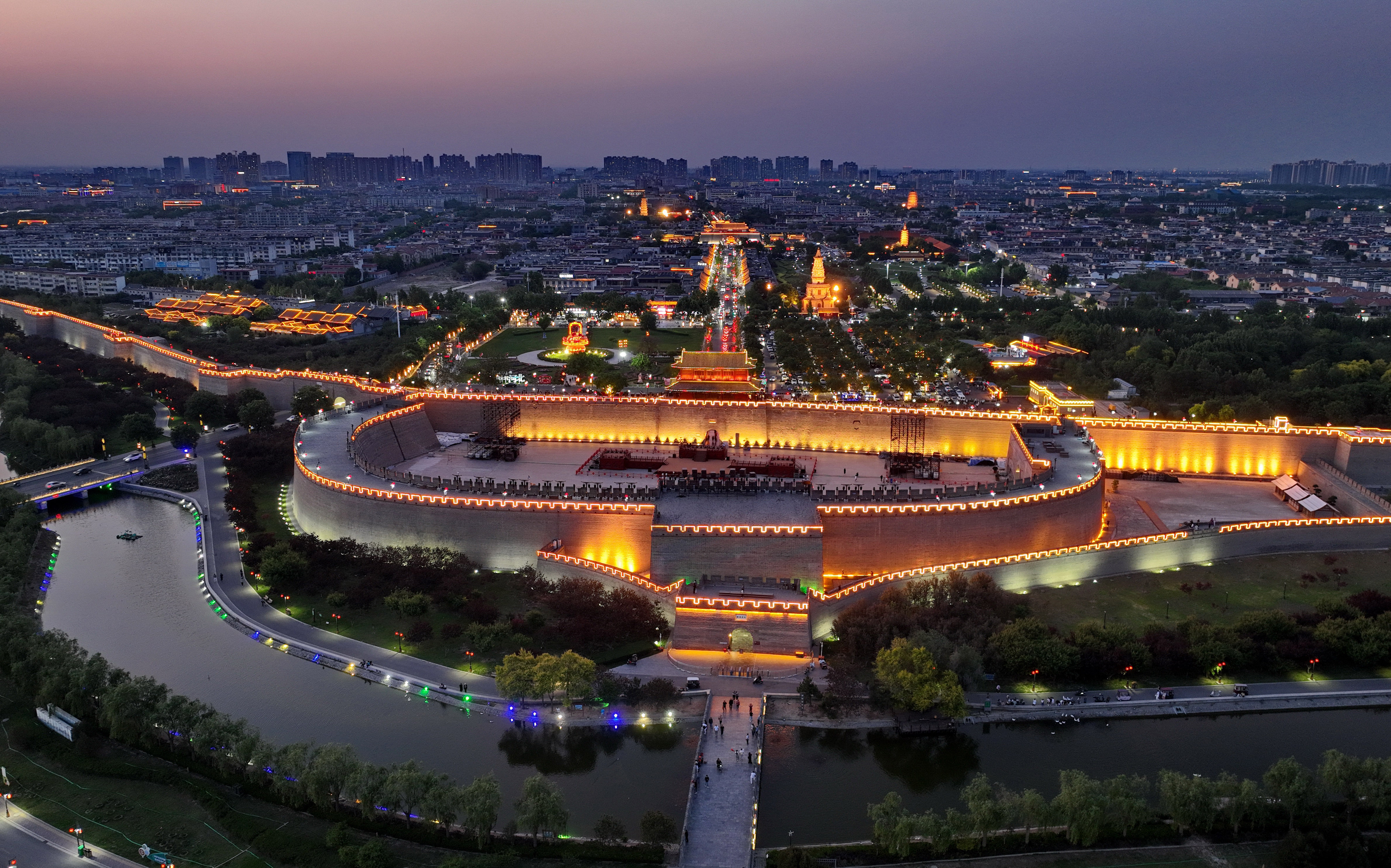 2025年5月15日,河北正定古城夜景(無人機照片)。 新華社記者 楊世堯攝