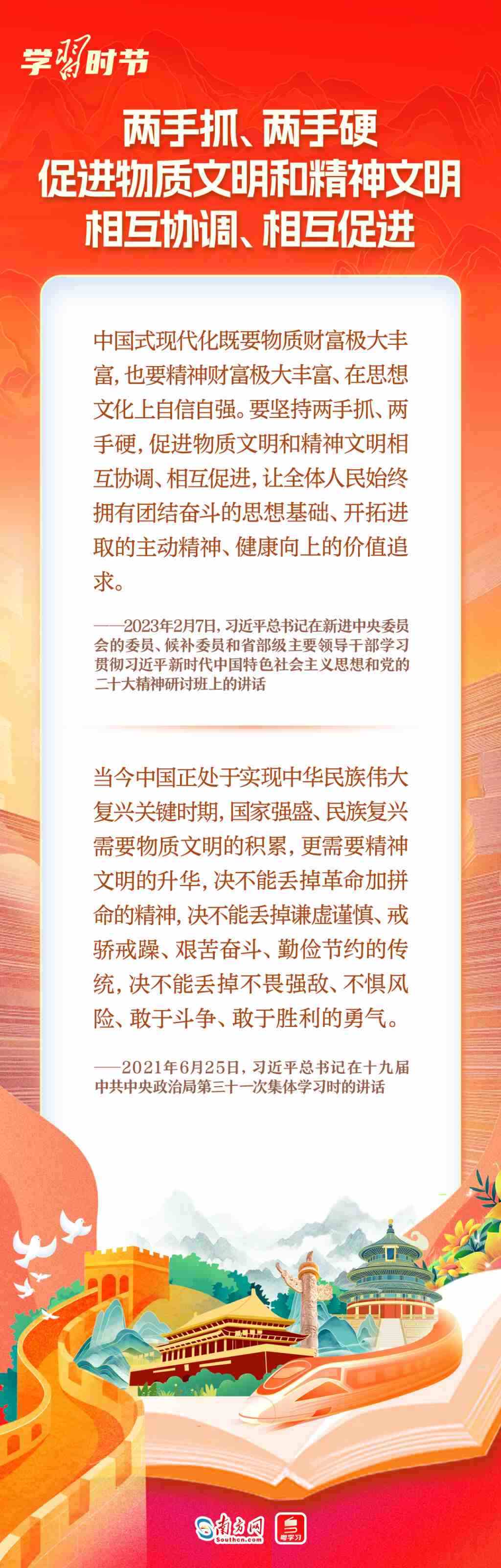 黨的十八大以來,黨中央持續(xù)推進(jìn)社會主義精神文明建設(shè),鞏固壯大社會主流價值,全民族精神面貌更加奮發(fā)昂揚,人民文明素養(yǎng)和社會文明程度顯著提升。習(xí)近平總書記高度重視社會主義精神文明建設(shè),近年來在不同場合就精神文明建設(shè)發(fā)表了一系列重要論述,為改進(jìn)創(chuàng)新精神文明建設(shè)工作、豐富人民群眾精神文化生活指明了方向、提供了遵循。我們整理了相關(guān)論述,與您繼續(xù)深入學(xué)習(xí)領(lǐng)會。
