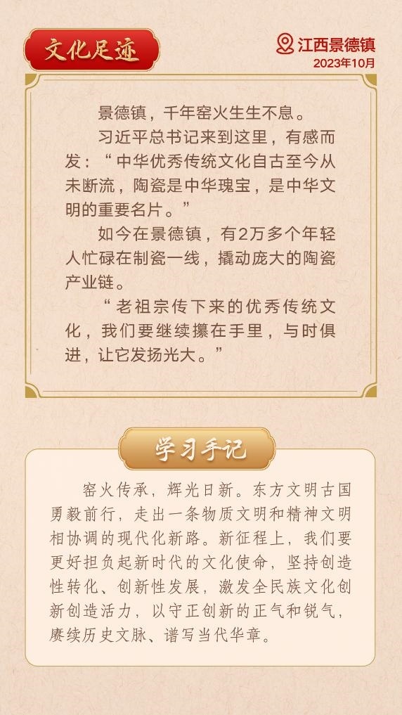 讓我們沿著習(xí)近平總書記近兩年來的文化足跡,感悟中華文明突出特性,堅定文化自信自強(qiáng)。