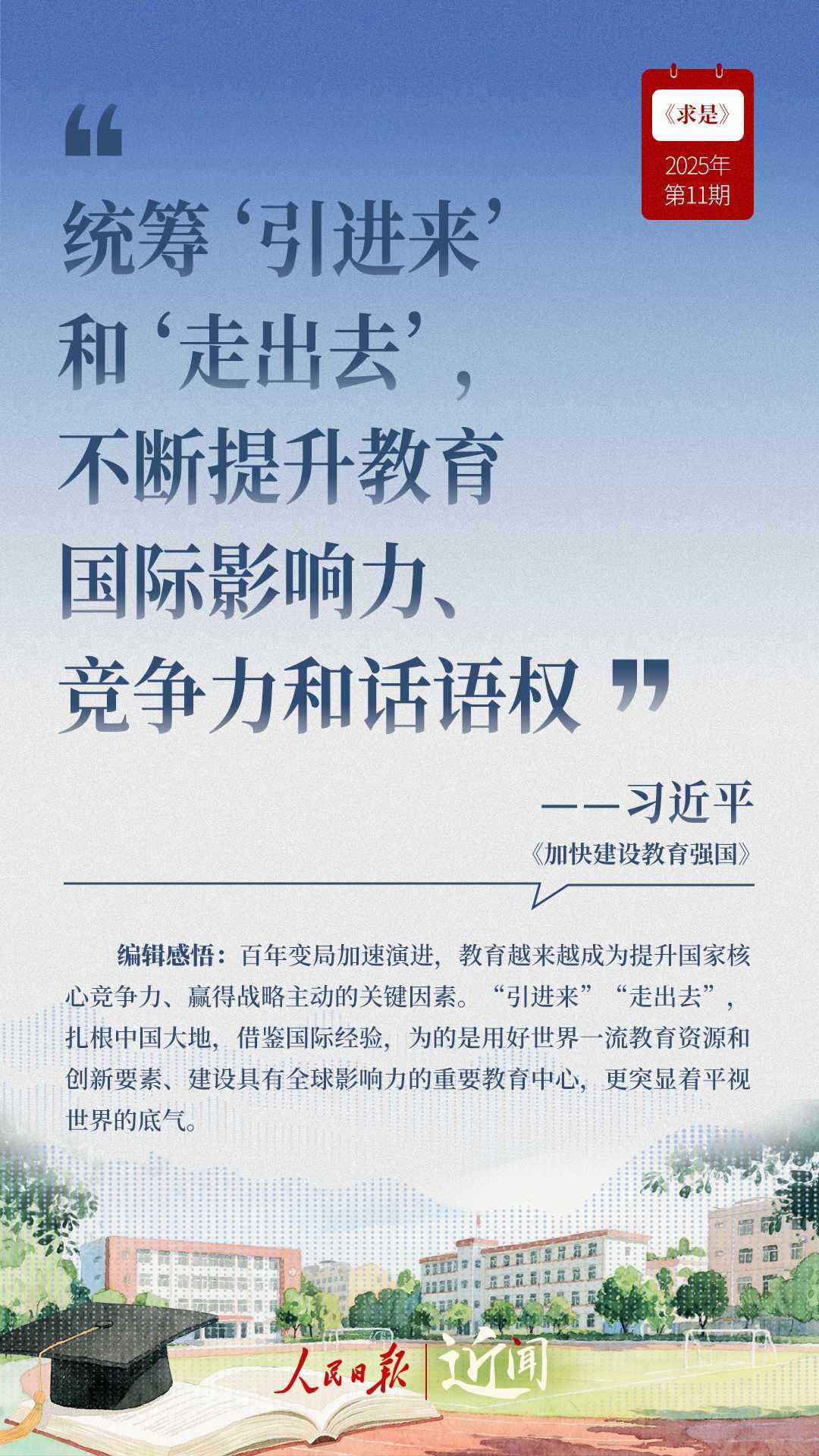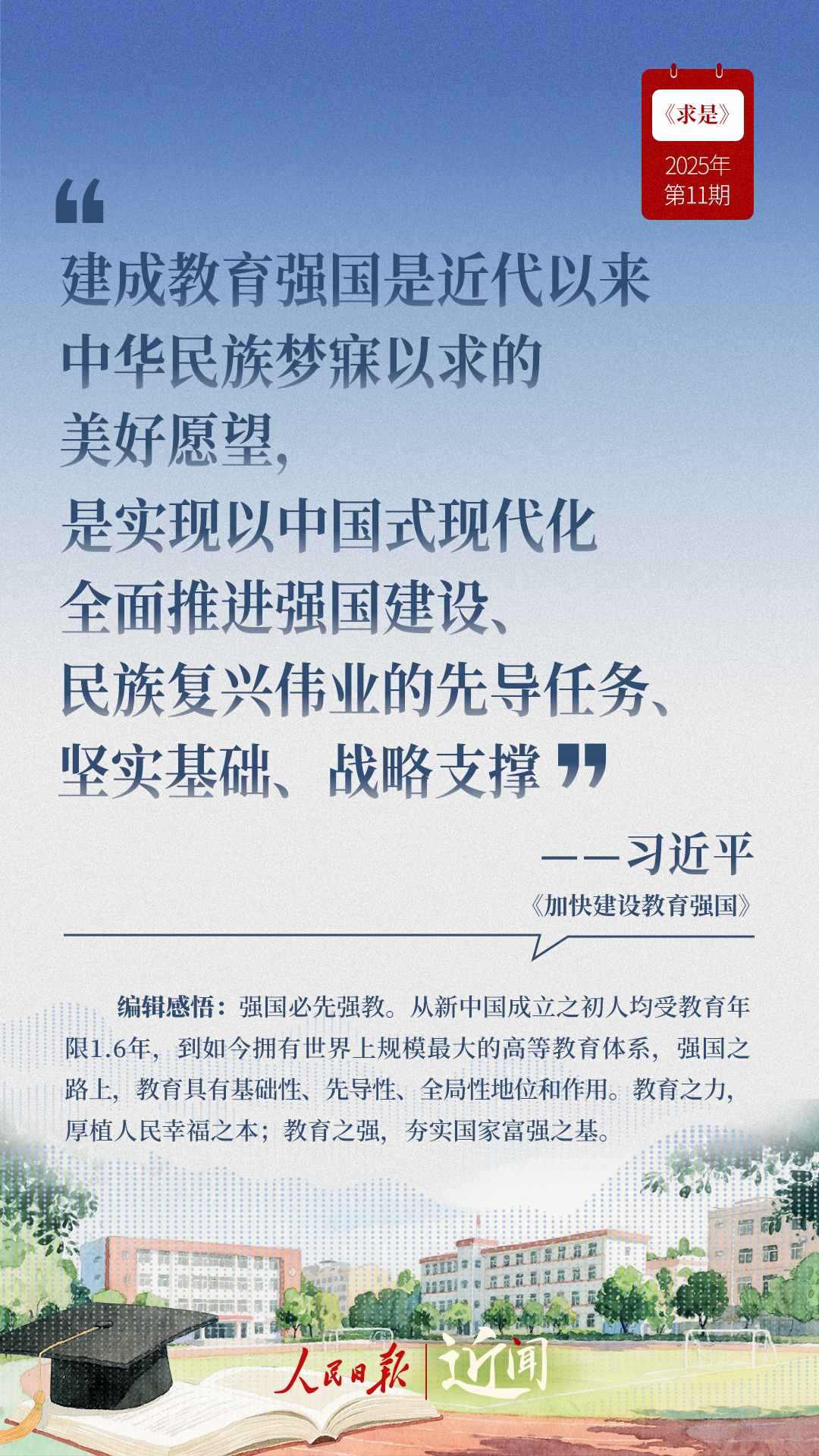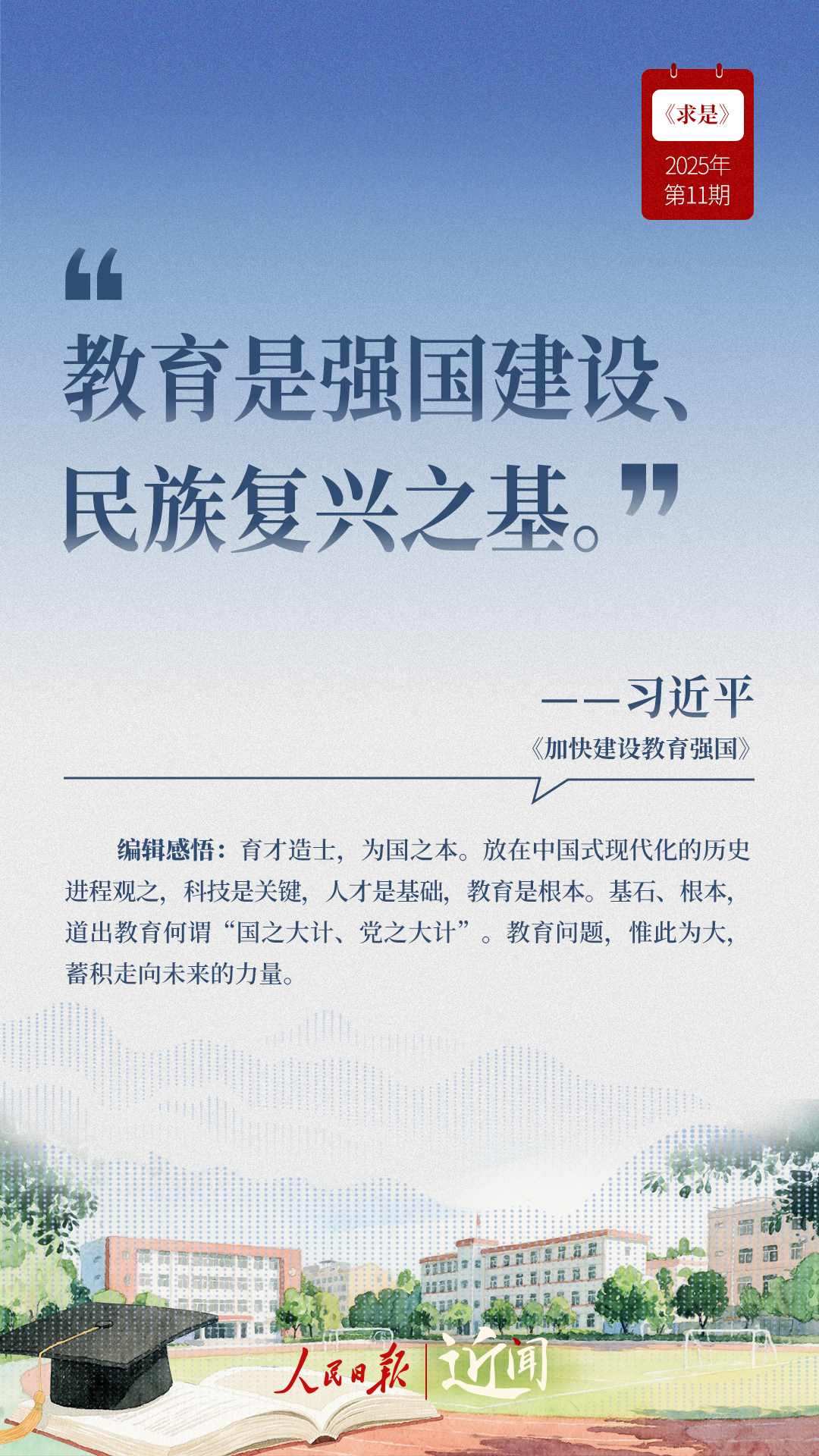 教育是國(guó)之大計(jì)、黨之大計(jì)。日前,《求是》雜志發(fā)表習(xí)近平總書記重要文章《加快建設(shè)教育強(qiáng)國(guó)》。“全面把握教育的政治屬性、人民屬性、戰(zhàn)略屬性”“讓教育改革發(fā)展成果更多更公平惠及全體人民”“讓教師享有崇高社會(huì)聲望、成為最受社會(huì)尊重的職業(yè)之一”……通過(guò)這些話,一起感悟習(xí)近平總書記對(duì)教育強(qiáng)國(guó)建設(shè)的謀劃與部署。