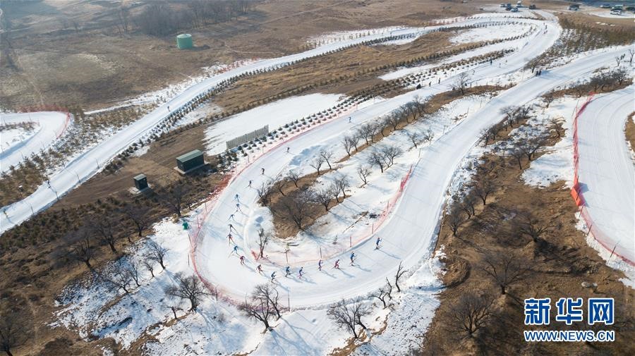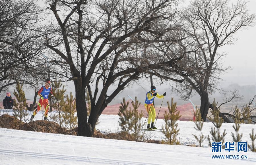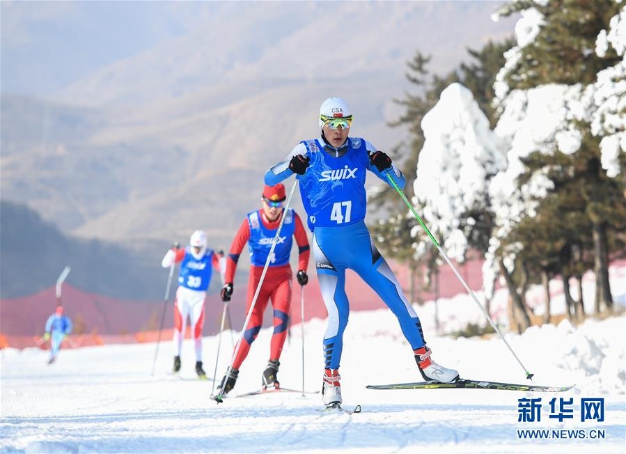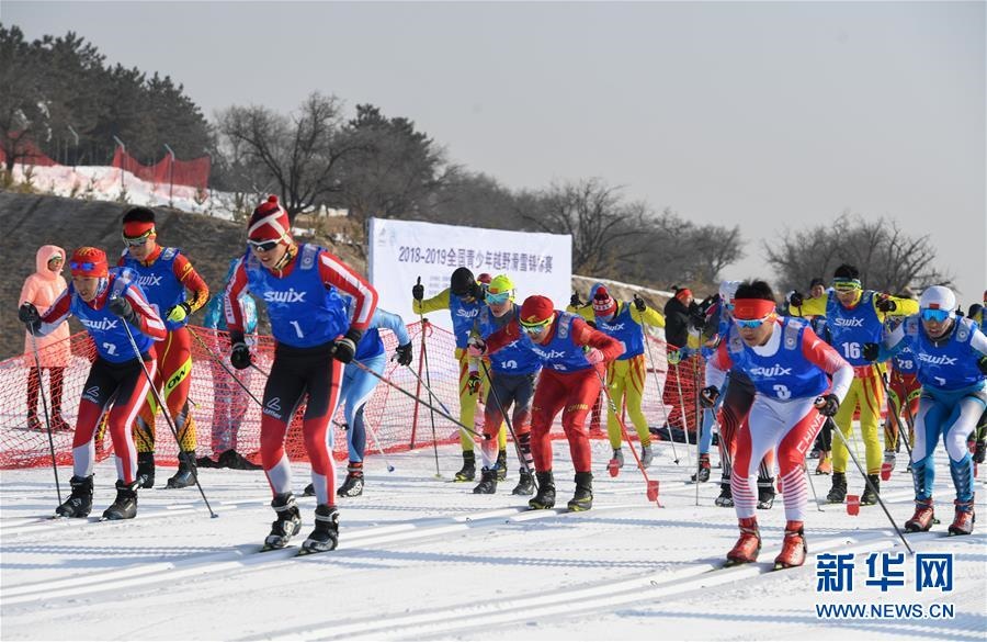1月11日至1月15日,2018-2019年度全國青少年越野滑雪錦標賽在內(nèi)蒙古烏蘭察布市涼城縣岱?;﹫雠e行。這是選手在青年組男子30公里集體出發(fā)(自由技術)比賽中(1月12日攝)。新華社記者彭源攝