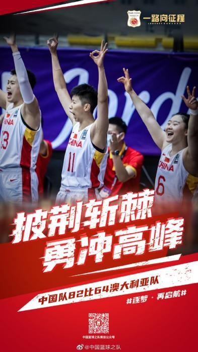 中新網(wǎng)客戶端北京9月30日電 北京時(shí)間29日晚,2021年女籃亞洲杯在約旦首都安曼結(jié)束了小組賽階段的爭奪,中國女籃在小組賽末輪比賽中以82:64擊敗勁敵澳大利亞隊(duì),晉級(jí)四強(qiáng)。