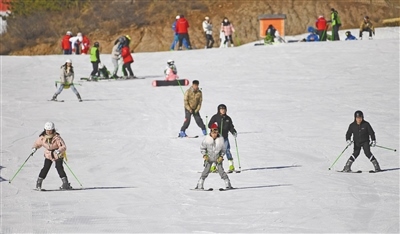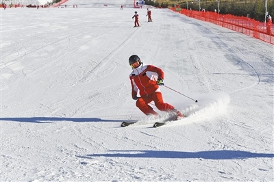 滑雪愛(ài)好者在呼和浩特市馬鬃山滑雪場(chǎng)滑雪。記者 王磊 攝