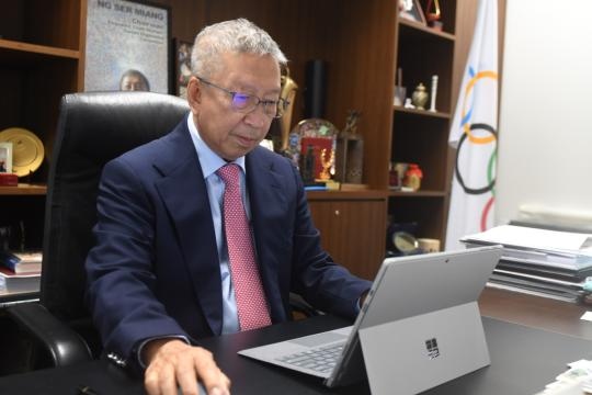 1月25日,國際奧委會(huì)副主席黃思綿在新加坡接受采訪。新華社發(fā)(鄧智煒攝)