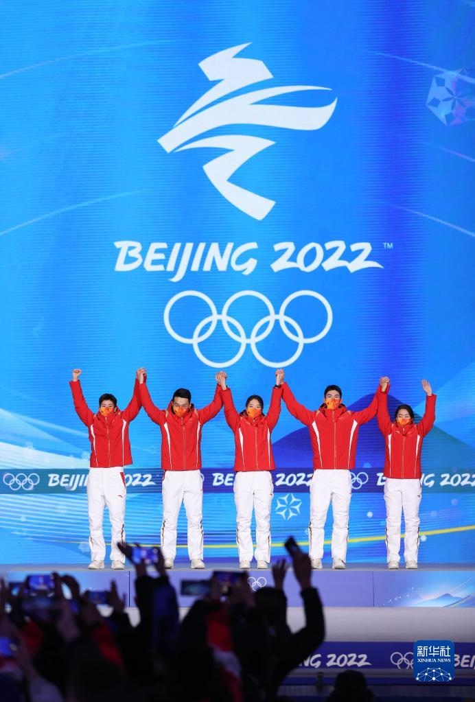 當(dāng)日,北京2022年冬奧會短道速滑混合團(tuán)體接力獎牌頒發(fā)儀式在北京賽區(qū)頒獎廣場舉行。