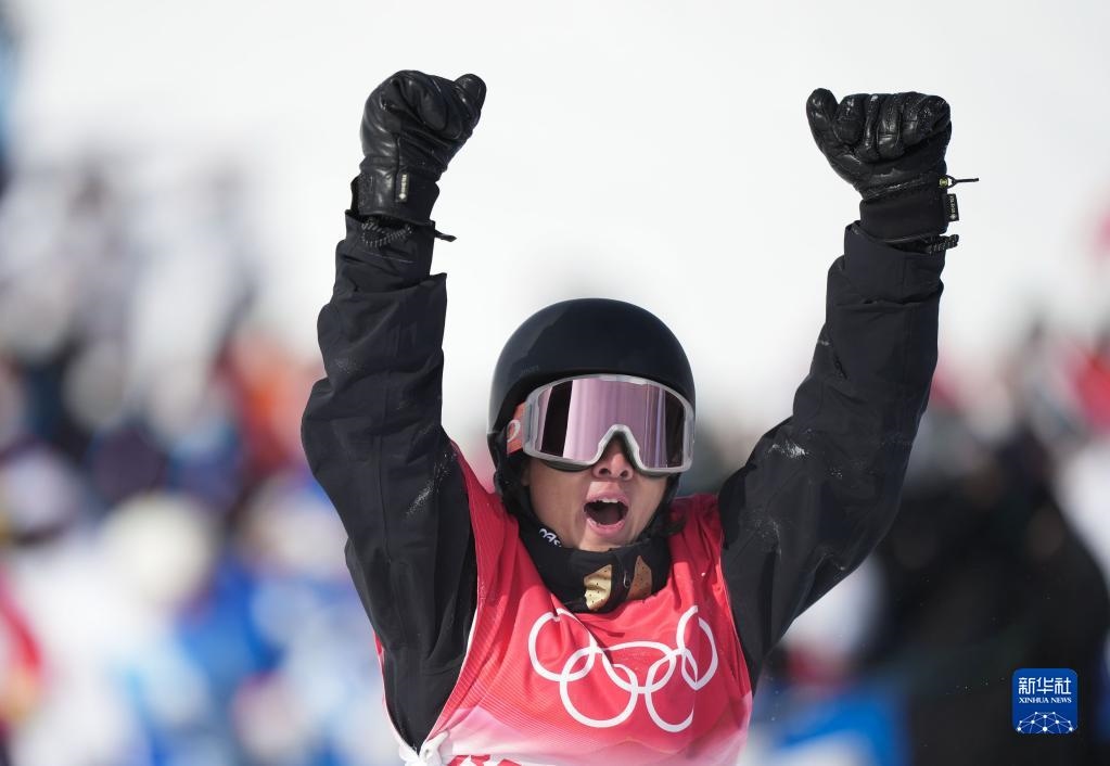 2月7日,中國(guó)選手蘇翊鳴在比賽后慶祝。