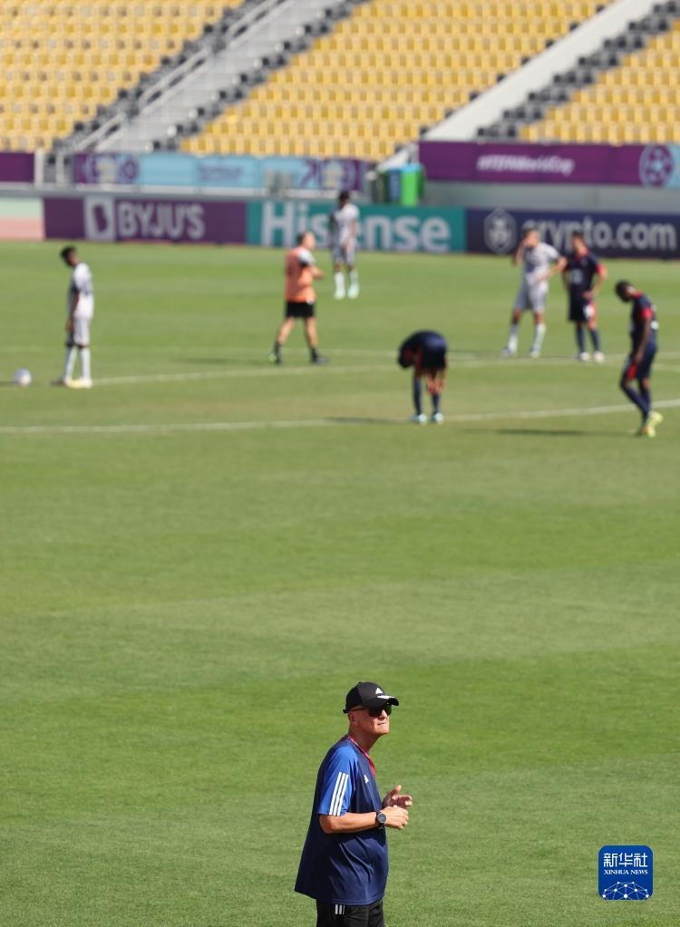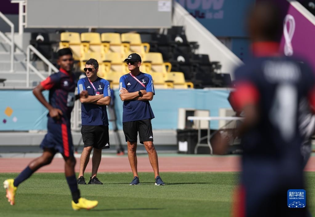 11月18日,國際足聯(lián)裁判委員會(huì)主席皮耶路易吉·科利納(下)觀看訓(xùn)練。新華社記者 賈浩成 攝
