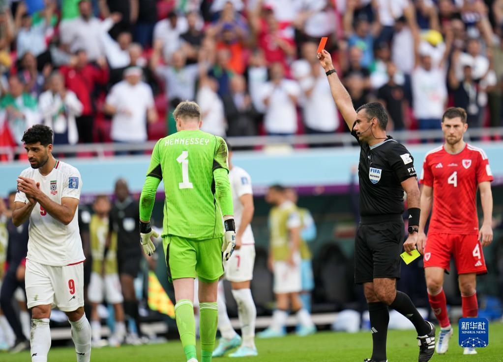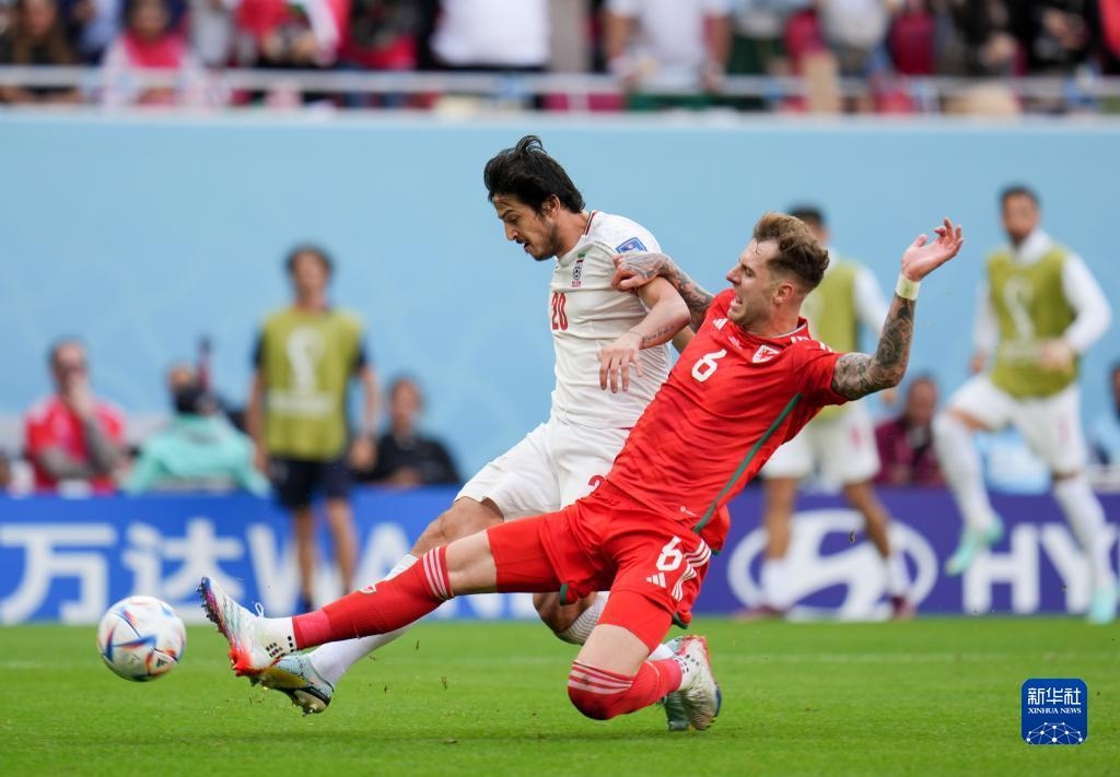 當(dāng)日,在卡塔爾多哈艾哈邁德·本·阿里體育場(chǎng)進(jìn)行的2022卡塔爾世界杯足球賽B組比賽中,伊朗隊(duì)以2比0戰(zhàn)勝威爾士隊(duì)。