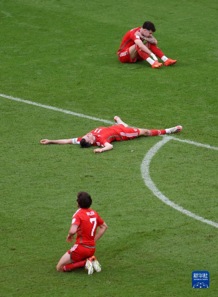 11月25日,威爾士隊(duì)球員加雷斯·貝爾(中)在本隊(duì)被打入第一粒進(jìn)球后。新華社記者 賈浩成 攝