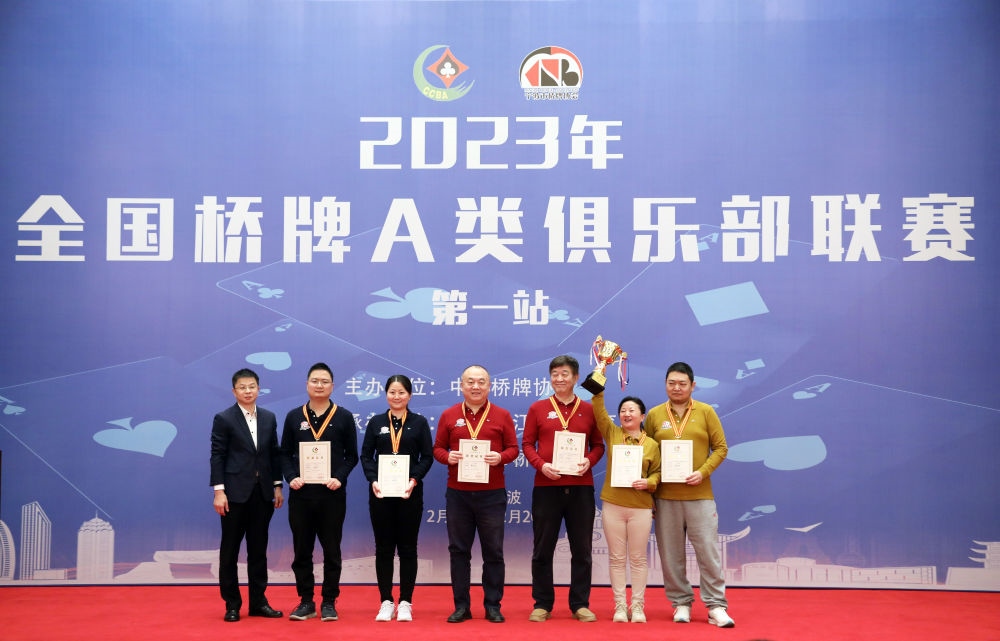 新華社北京2月20日電 中國橋牌協會消息,歷時五天的2023年全國橋牌A類俱樂部聯賽第一站20日在寧波落幕,錦爍隊奪得冠軍。