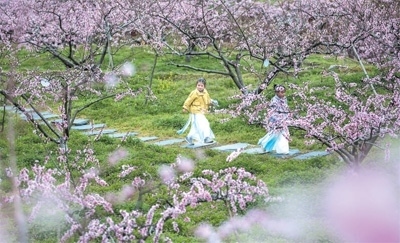 不過(guò),肖田鄉(xiāng)最出彩的還不是朗際古色,而是從小吟村生發(fā)出來(lái)的桃紅色。盡管此刻,小吟村東溪村小組的四百畝黃桃基地,樹上掛著的還只是星星點(diǎn)點(diǎn)的花苞,但盤春梅知道,不多時(shí)日,漫山遍野便會(huì)開出屬于桃紅的磅礴氣勢(shì)。