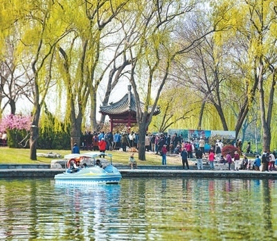 3月30日,市民游客在陶然亭公園泛舟、賞花,感受春天的氣息。本報(bào)記者 賀 勇攝