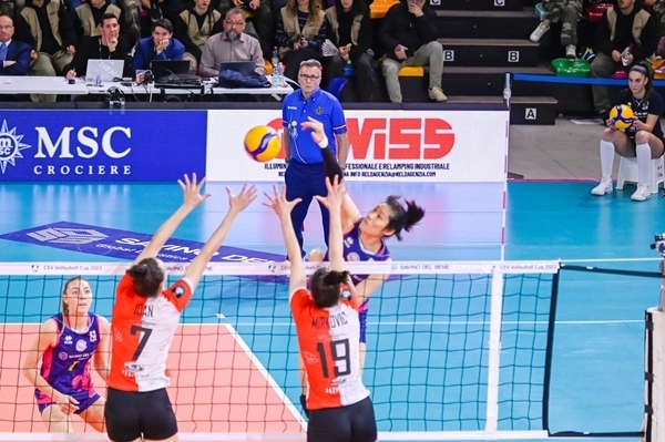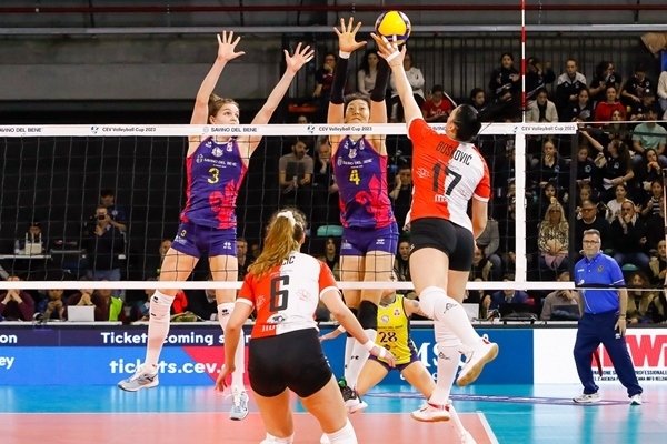 朱婷(4號(hào))與貝麗恩攔網(wǎng)。圖片來(lái)源:歐聯(lián)杯官網(wǎng)