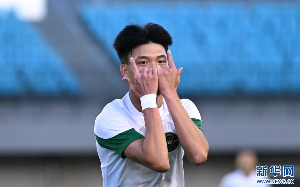 ??6月15日,浙江俱樂部U21隊球員王鈺棟在比賽中慶祝進(jìn)球。