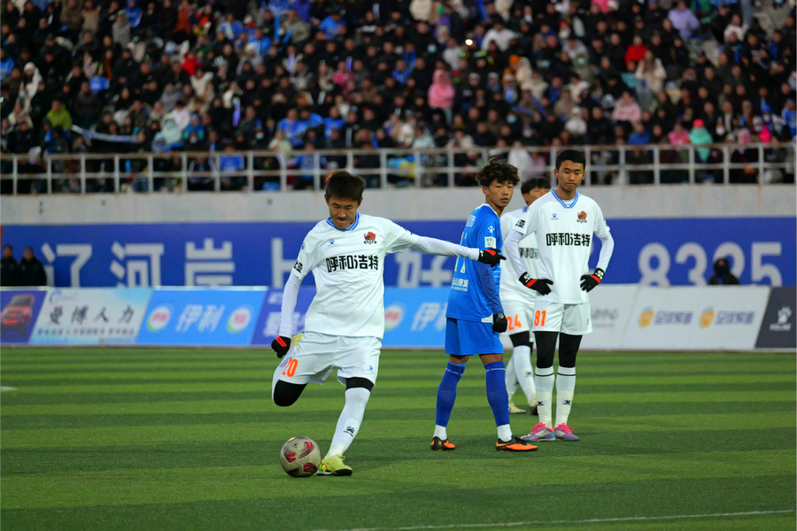 2025年伊利內(nèi)蒙古自治區(qū)足球超級聯(lián)賽決賽首回合比賽正在進(jìn)行。經(jīng)過激烈角逐,呼和浩特隊(duì)0:0戰(zhàn)平通遼隊(duì)。