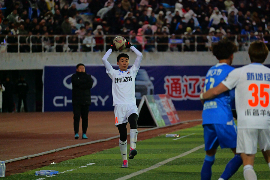 比賽伊始,兩隊(duì)直接開啟高速對抗模式,攻防節(jié)奏緊湊,轉(zhuǎn)換效率拉滿,為現(xiàn)場4萬余觀眾呈現(xiàn)了開局即高潮的對決。雙方輪番發(fā)起高強(qiáng)度攻勢,給對方球門制造實(shí)質(zhì)性威脅,呼和浩特隊(duì)小組賽表現(xiàn)亮眼的16號孟克特爾文聚集中路攻堅(jiān),31號外援馬庫斯則鎮(zhèn)守左路策應(yīng),左路突破加中路沖擊向通遼隊(duì)禁區(qū)施壓,然而未能將攻勢轉(zhuǎn)化為進(jìn)球,兩隊(duì)以0:0的比分進(jìn)入中場休息。