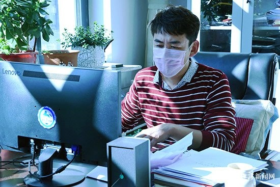喀喇沁旗烏蘭牧騎隊(duì)長吳國輝在家中創(chuàng)作快板作品《為逆行者點(diǎn)贊》。受訪者供圖