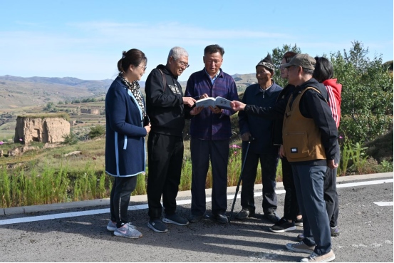 為了助推清水河縣全力推進(jìn)長城國家文化公園項(xiàng)目建設(shè),呼和浩特市長城科普學(xué)會(huì)會(huì)員們到達(dá)馬頭山下的小元峁段明長城、川峁村鴻門口馬市遺址、水泉鎮(zhèn)紅(鴻)門口地下長城博物館后,顧不得旅途勞頓和登山困乏,立即開展考察工作、拍照、察看、比對、討論,將學(xué)會(huì)出版的《長城烽火》《中國歷代長城詩大全》《情系長城》等書籍贈(zèng)送給水泉鎮(zhèn)政府,為智庫專家高振清贈(zèng)送聘書,聽他講解鴻門口的歷史。