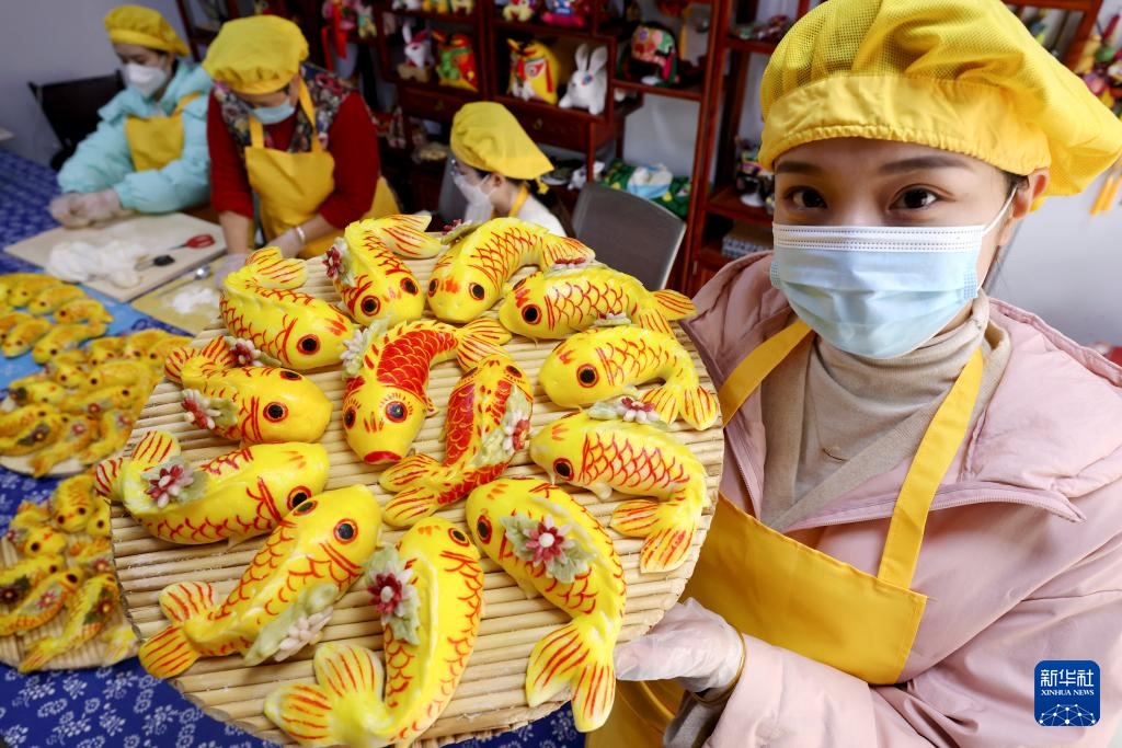 1月13日,山東省棗莊市龍山路街道居民在制作傳統(tǒng)“面魚”。新華社發(fā)(孫中喆 攝)