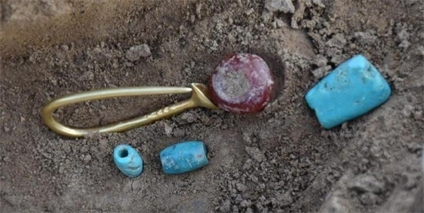 大坨頭文化聚落由內(nèi)、外兩重環(huán)壕圍合,外環(huán)壕直徑142至155米,寬8至12米,圍合面積約1.7萬平方米。內(nèi)環(huán)壕直徑70至72米,寬約18米,圍合面積約0.4萬平方米。在內(nèi)環(huán)壕內(nèi)、內(nèi)外環(huán)壕之間均發(fā)現(xiàn)有灰坑、窖穴、房址等遺跡。環(huán)壕聚落外東南方向發(fā)現(xiàn)27座豎穴土坑墓葬,布局規(guī)律,墓葬方向一致,部分墓葬還出土了靴形足彩陶尊等彩繪陶器、玉玦、綠松石項(xiàng)鏈、紅瑪瑙串珠、扣針形帶翼喇叭口金耳環(huán)等隨葬品,顯示了墓主較高的地位等級。穩(wěn)定同位素結(jié)果顯示,新宮遺址人群的食性以粟為主,肉食水平略高于二里頭遺址人群,并且不同等級墓葬的墓主人之間飲食結(jié)構(gòu)差異不大。該墓地的發(fā)現(xiàn),對于研究大坨頭文化的時空范圍、人群與族屬、喪葬習(xí)俗等提供了實(shí)物資料。