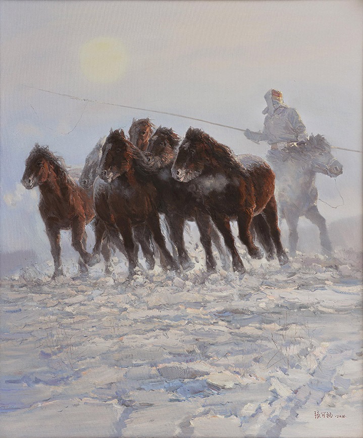 張可揚(yáng)油畫《天驕飛雪邀明月》