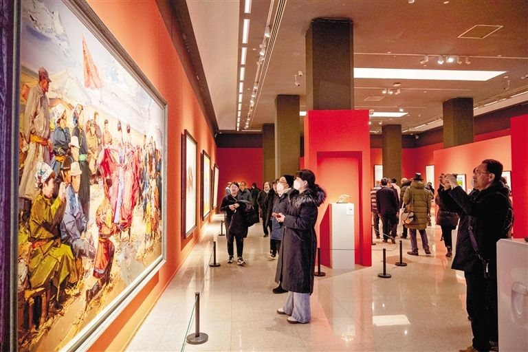 12月30日,元旦假期第一天,中國美術(shù)館內(nèi)“蒙古馬精神——內(nèi)蒙古美術(shù)攝影作品展”前來觀展的觀眾絡(luò)繹不絕。展出的130多件藝術(shù)作品生動反映了內(nèi)蒙古各族人民牢記囑托、感恩奮進(jìn),努力完成習(xí)近平總書記交給內(nèi)蒙古的五大任務(wù)和全方位建設(shè)模范自治區(qū)的火熱實(shí)踐,全面展示了內(nèi)蒙古壯美和美善美、可信可親可愛的新時(shí)代形象。
