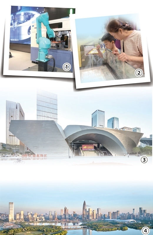 圖①:展覽中“無人工廠”演示場景,機器人在生產(chǎn)線作業(yè)。朱洪波攝 圖②:參觀者在觀看展品。本報記者 鄭海鷗攝 圖③:深圳改革開放展覽館外景。深圳改革開放展覽館供圖 圖④:深圳灣。史家民攝(影像中國)