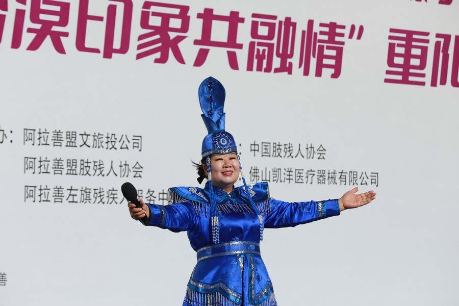 北疆新聞巴彥浩特10月11日電(記者 張楊)10月10日—11日,第三屆“沙漠印象”(2024)輪椅挑戰(zhàn)者大會暨首屆“愛老助殘 沙漠印象共融情”重陽節(jié)活動,在內蒙古阿拉善夢想沙漠公園燃情開幕。著名女中音歌唱家索倫嘎傾情助力,在開幕式和頒獎儀式上,分別演唱了《蒙古馬》和《守望相助》,受到現(xiàn)場觀眾的熱情掌聲。