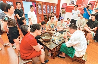 在東城區(qū)傳統(tǒng)韻味體驗之旅中,游客在吉祥大戲院國粹京劇體驗基地可以穿戴上京劇服裝道具,體驗戲曲演員化妝過程,品嘗戲曲主題“吉祥咖啡”,觀看經(jīng)典京劇演出,與名師名家互動,零距離感受國粹經(jīng)典的魅力;在廣譽遠中醫(yī)藥文化體驗基地,游客通過聽中醫(yī)講解、辨藥材識優(yōu)劣、手工制作香囊等多種體驗方式,感受中醫(yī)藥文化。在和平菓局京味文化體驗基地,游客可以走進煤廠胡同、小覺寺等老北京場景,體驗拉洋片、草編藝術(shù)、皮影、捏面人等傳統(tǒng)京味文化。