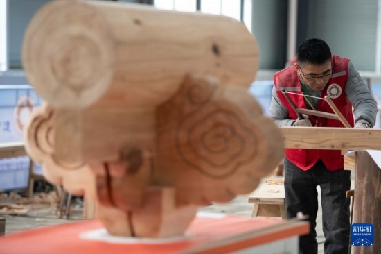 3月6日,參賽選手在參加木作文物修復(fù)師項(xiàng)目比賽。