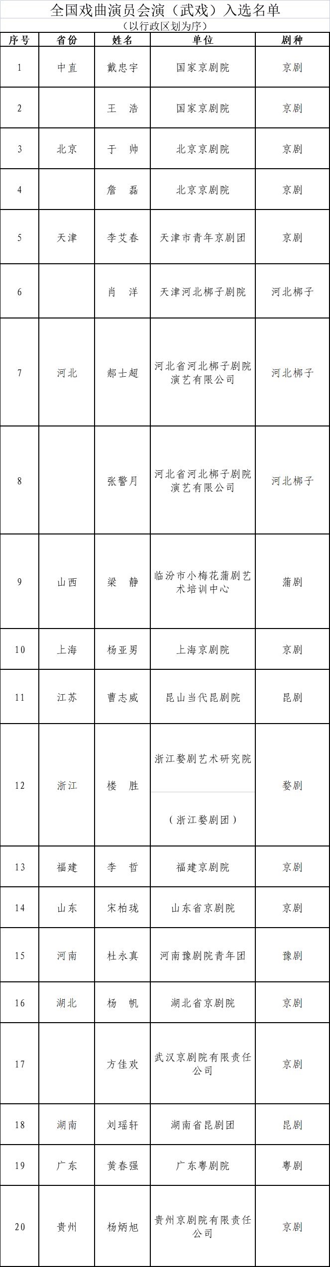 人民網(wǎng)北京3月25日電 (記者楊虞波羅)據(jù)文化和旅游部官網(wǎng)消息,日前,全國戲曲演員會(huì)演(武戲)遴選和公示工作已結(jié)束?,F(xiàn)將入選名單予以公布,并就有關(guān)事項(xiàng)函告如下。