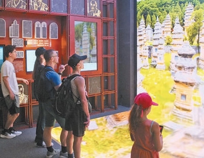 游客在少林寺數(shù)字檔案展廳參觀。