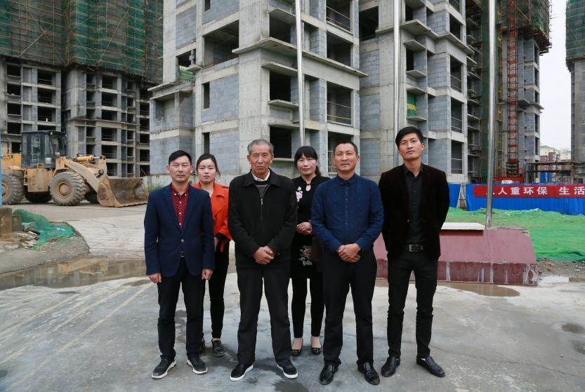 △這是晏傳忠(前排左二)一家在工地上的照片(合影時(shí)二兒子晏家勇不在場(chǎng)。照片由黃久生提供)