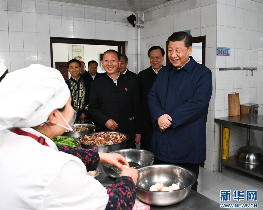 這是4月15日下午,習(xí)近平在石柱土家族自治縣中益鄉(xiāng)小學(xué)走進(jìn)師生食堂,了解貧困學(xué)生餐費(fèi)補(bǔ)貼和食品安全衛(wèi)生情況。 新華社記者 謝環(huán)馳 攝