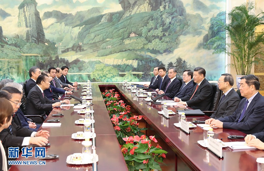 國(guó)家主席習(xí)近平24日在人民大會(huì)堂會(huì)見日本首相特使、自民黨干事長(zhǎng)二階俊博。