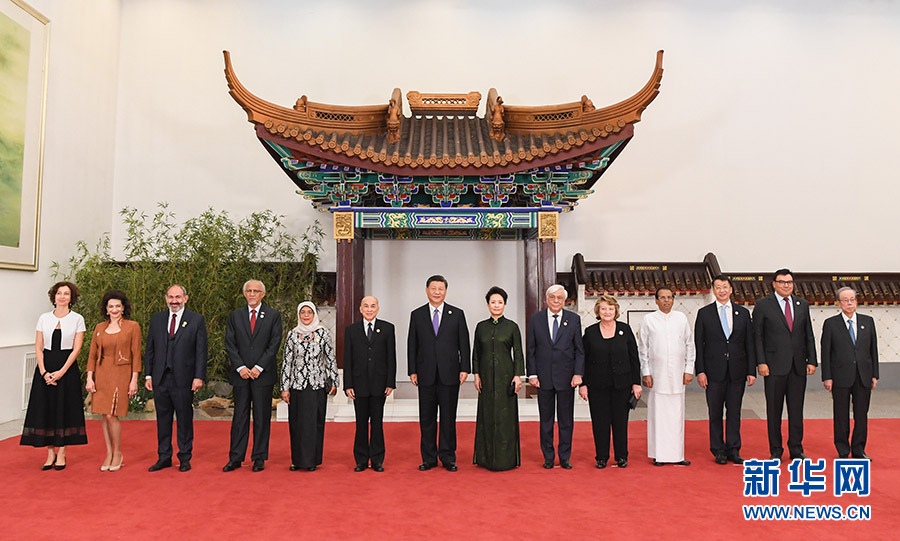 國家主席習(xí)近平和夫人彭麗媛14日晚在人民大會堂舉行宴會,歡迎出席亞洲文明對話大會的外方領(lǐng)導(dǎo)人夫婦及嘉賓。