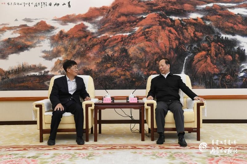 9月27日中午,石泰峰書記會(huì)見(jiàn)昆山科騰生物科技有限公司董事長(zhǎng)魯茂龍。內(nèi)蒙古日?qǐng)?bào)記者 袁永紅 攝