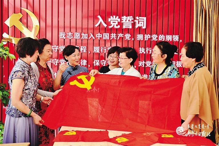 6月30日,呼和浩特市玉泉區(qū)五塔北街社區(qū)老黨員們正在一針一線繡黨旗。當日,該社區(qū)舉行了“繡黨旗 迎七一”獻禮活動,老黨員、新黨員和志愿者一起繡黨旗、頌黨恩,抒發(fā)對黨的熱愛之情。(內蒙古日報記者 安寅東 攝)