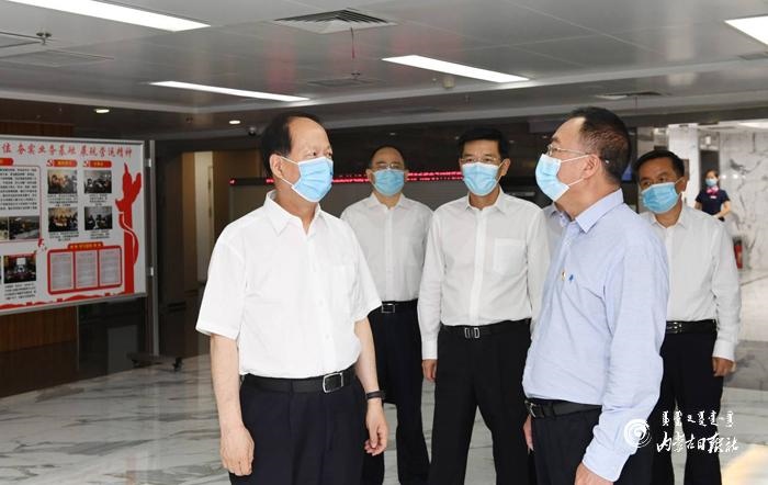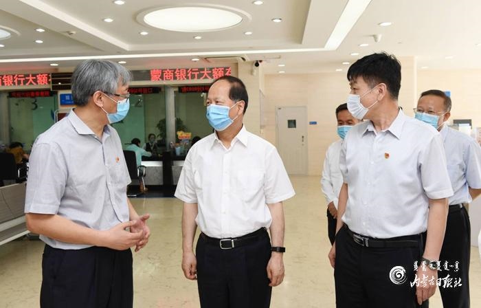 7月13日,自治區(qū)黨委書記、人大常委會(huì)主任石泰峰來(lái)到蒙商銀行新城支行調(diào)研。內(nèi)蒙古日?qǐng)?bào)記者 袁永紅 攝