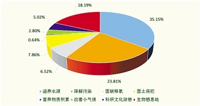 內(nèi)蒙古森工集團2018年森林生態(tài)系統(tǒng)服務(wù)功能價值比例。