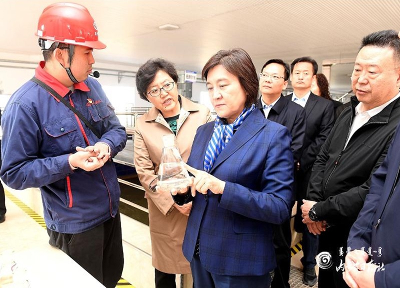布小林十分關(guān)心沿黃地區(qū)的水資源節(jié)約集約高效利用和生態(tài)保護建設(shè)。她來到烏海市綠色生態(tài)農(nóng)業(yè)產(chǎn)業(yè)園,走進綠農(nóng)永勝農(nóng)民專業(yè)合作社陽光大棚葡萄基地,詳細了解葡萄種植需水和高效節(jié)水設(shè)施的使用情況;在烏海市啟源供水有限公司,實地查看凈水工藝流程及針對黃河水特點采取的處理措施。布小林指出,我區(qū)沿黃地區(qū)大多水資源匱乏,生態(tài)保護和經(jīng)濟社會發(fā)展面臨水資源短缺的剛性約束。抓好水資源節(jié)約集約高效利用,是推進黃河流域生態(tài)保護和高質(zhì)量發(fā)展的重中之重。要牢固樹立節(jié)水意識,堅持以水定城、以水定地、以水定人、以水定產(chǎn),合理規(guī)劃人口、城市和產(chǎn)業(yè)發(fā)展,大力發(fā)展節(jié)水產(chǎn)業(yè)和技術(shù),實施全社會節(jié)水行動,推動用水方式由粗放向節(jié)約集約轉(zhuǎn)變。要大力發(fā)展循環(huán)經(jīng)濟,結(jié)合技術(shù)改造和產(chǎn)品更新?lián)Q代,組織實施重大節(jié)水和水循環(huán)利用示范工程,提高水資源重復(fù)利用率。