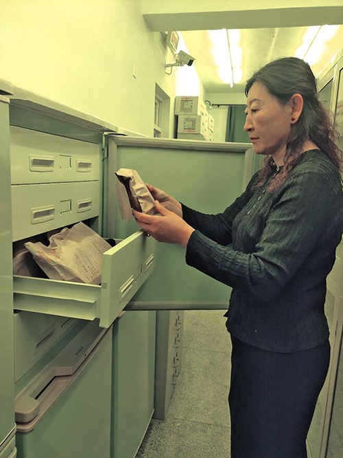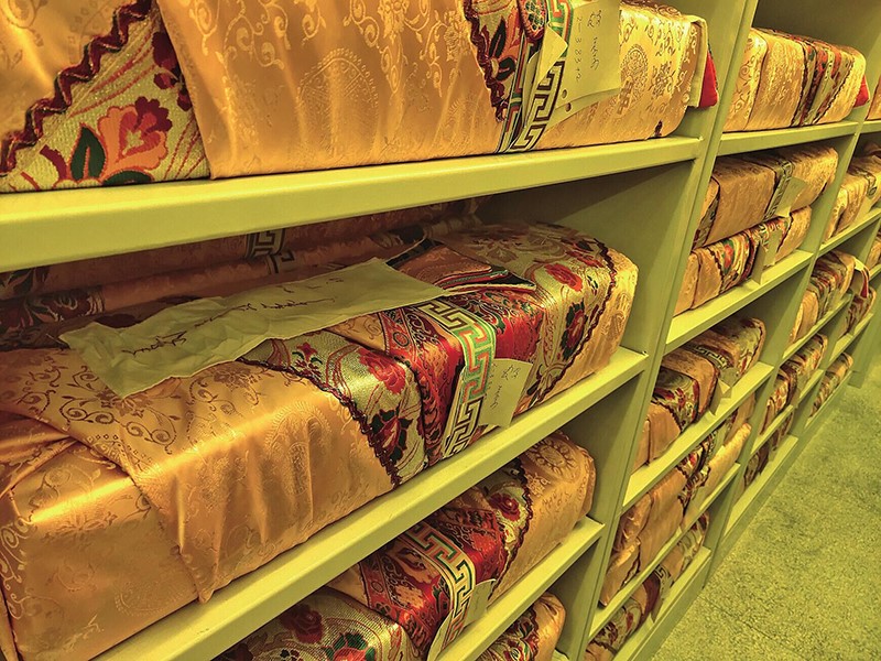 走入蒙古文古籍庫(kù),上萬(wàn)件古籍靜靜地?cái)[放著,在昏黃的特殊燈光照射下,一排排書(shū)架金光閃閃,一個(gè)個(gè)防磁柜就像知識(shí)的巨人并肩站立,歷史在這里塵封,也在這里開(kāi)啟。