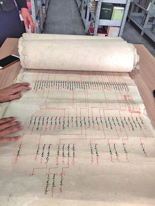 內(nèi)蒙古社會(huì)科學(xué)院圖書(shū)館館長(zhǎng)王智說(shuō):“這里的寶貝有很多,經(jīng)書(shū)、圣旨、家譜,種類豐富且保存較為完整。館內(nèi)現(xiàn)有藏書(shū)26萬(wàn)冊(cè),包括漢文、蒙古文、滿文、外文等各類圖書(shū)。其中,蒙古文古籍6280種3萬(wàn)余冊(cè),約占全國(guó)各圖書(shū)館蒙古文古籍收藏種類的50%,且多為木刻原版或手抄本。單是這一個(gè)數(shù)字,就是其它圖書(shū)館無(wú)法匹及的?!?/p>
