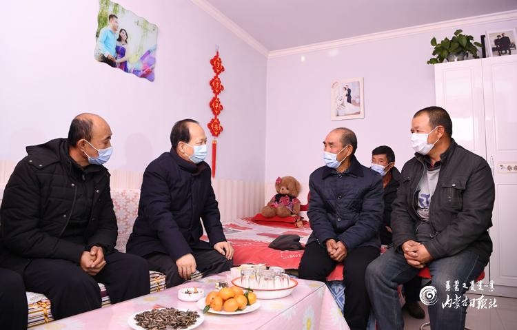 屋外白雪皚皚,屋內(nèi)爐火熊熊。石泰峰首先來到庫倫圖村脫貧戶連縻拴家,與老倆口親切交談,深入了解飲水、住房、健康等生產(chǎn)生活狀況,與他們一起細(xì)算收入賬,詢問他們對(duì)幫扶工作的滿意度,鼓勵(lì)他們堅(jiān)定信心,在政策幫扶下勤勞致富。隨后,石泰峰驅(qū)車來到六道溝村,在脫貧戶孟忠忠家,與孟忠忠、胡金柱、王鎖林、韓向林、韓金龍等貧困群眾圍坐在一起嘮起家常,詳細(xì)了解“兩不愁三保障”及飲水安全、產(chǎn)業(yè)發(fā)展等情況。得知他們雖然都是因病、因殘致貧,但生產(chǎn)生活都有保障,而且不等不靠、自我發(fā)展的心勁兒很足,石泰峰說,脫貧路上一個(gè)都不能少、一戶都不能落,今年是脫貧攻堅(jiān)戰(zhàn)最后一年,也是全面建成小康社會(huì)收官之年,看到你們不但脫了貧,而且信心滿滿,很有志氣和骨氣,我很放心。幸福是奮斗出來的,希望大家在政策幫扶下繼續(xù)奮斗,共同努力脫貧致富過上好日子。石泰峰要求當(dāng)?shù)馗刹恳虻刂埔?、精?zhǔn)施策,接續(xù)推進(jìn)全面脫貧與鄉(xiāng)村振興有效銜接。