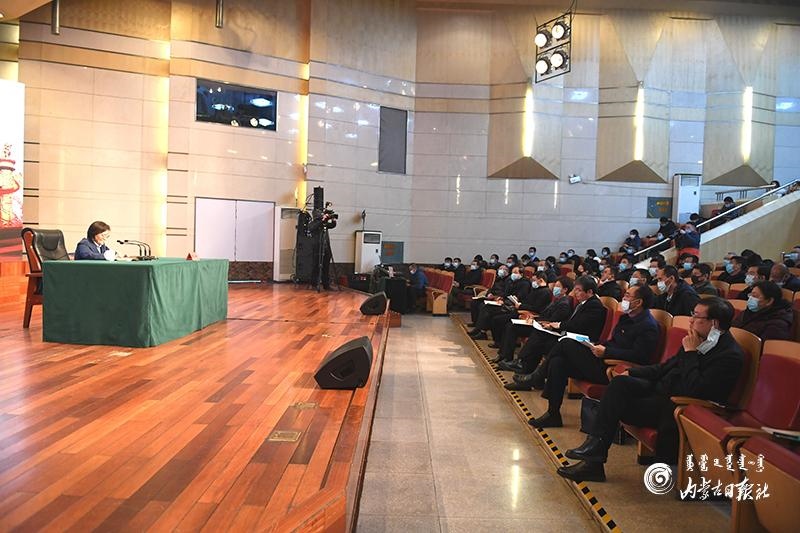12月22日,自治區(qū)黨委副書記、自治區(qū)主席布小林在內(nèi)蒙古師范大學(xué)作高校形勢政策報(bào)告。內(nèi)蒙古日報(bào)記者 韓卿立 攝