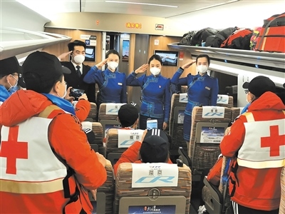 作為連通全國(guó)的運(yùn)輸動(dòng)脈,在完成常規(guī)運(yùn)輸任務(wù)的基礎(chǔ)上,高鐵列車(chē)還承擔(dān)起了運(yùn)送醫(yī)務(wù)人員、醫(yī)療用品和保障物資的特別任務(wù)。內(nèi)蒙古援鄂醫(yī)療隊(duì)員兩批次乘坐G2438次列車(chē)從北京中轉(zhuǎn)赴武漢;五批次乘坐“草原動(dòng)車(chē)”由鄂爾多斯回到呼和浩特?!八陀⑿鄢稣鳎佑⑿刍丶摇?,七次運(yùn)輸任務(wù),高鐵車(chē)隊(duì)以最高禮遇和精心的服務(wù),贏得醫(yī)療隊(duì)員們的紛紛好評(píng)。“謝謝你們,出發(fā)時(shí)為我們送行,歸來(lái)時(shí)為我們唱起凱旋之歌?!贬t(yī)療隊(duì)隊(duì)員李紅娟緊緊握住列車(chē)長(zhǎng)張雨的手說(shuō)。