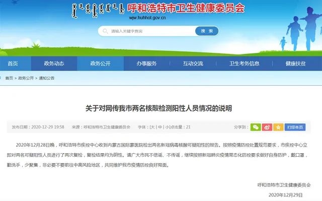 呼和浩特市兩人核酸檢測(cè)呈陽(yáng)性?官方回應(yīng)來了!