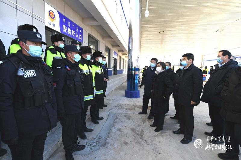 1月5日,自治區(qū)黨委副書記、自治區(qū)主席布小林在興和縣高廟子公安檢查站,看望慰問駐守在這里的執(zhí)勤民警。內(nèi)蒙古日報記者 韓卿立 攝