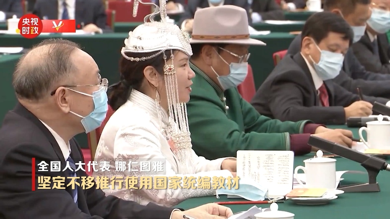 娜仁圖雅代表是巴彥淖爾市烏拉特前旗蒙古族小學(xué)教師,今年能和總書記面對面交流,她的內(nèi)心十分激動?!皩W(xué)習(xí)使用國家通用語言文字,有利于孩子們實現(xiàn)更大夢想。在會上,我說‘我是蒙古族,但我首先是中國人’。總書記對此十分肯定,他說,要認(rèn)真做好推廣普及國家通用語言文字工作,全面推行使用國家統(tǒng)編教材。”娜仁圖雅說。